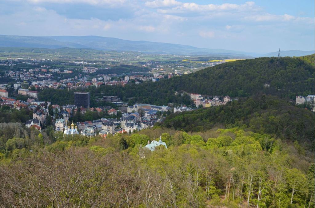 A fürdőkön és a forrásvizek mellett számos rövidebb túralehetőséget kínálnak a várost körülölelő hegyek, számos kilátóval. Egyik legnépszerűbb ilyen hegyi kilátó a Diana kilátó. Elérhető felvonóval (lanovka), de a központból induló túraútvonalon is fel lehet sétálni. Nem nehéz, enyhe emelkedőkkel tarkított jelzett útvonalakon lehet haladni, erdőben és egyfelől az egész városra rá lehet látni.