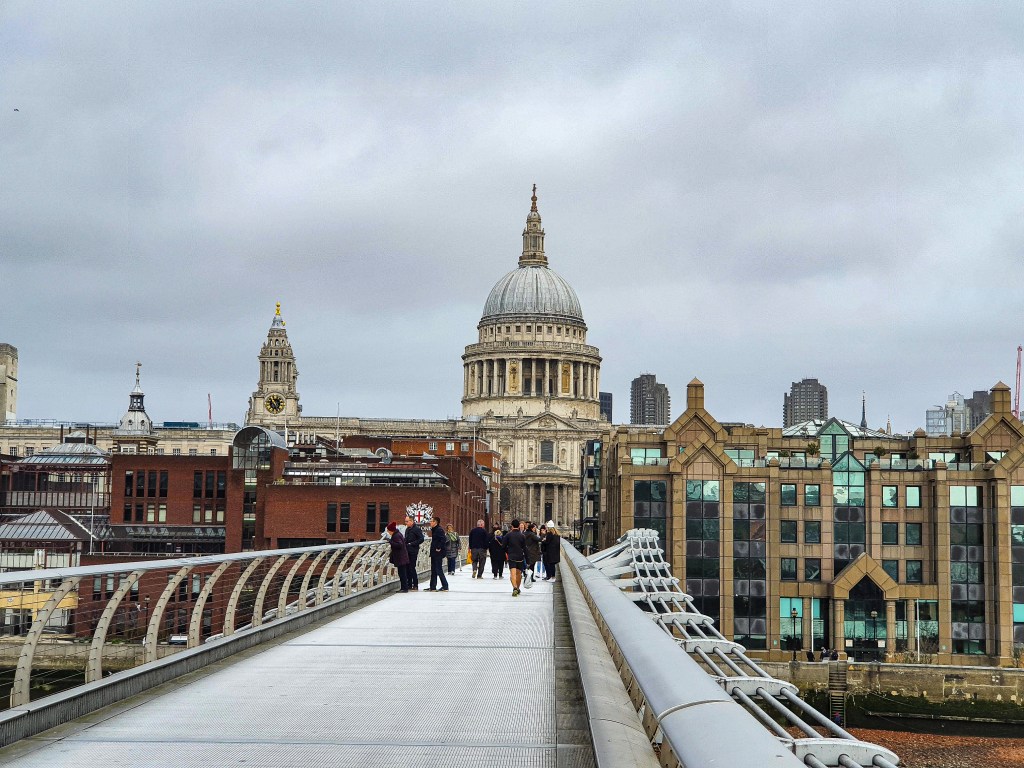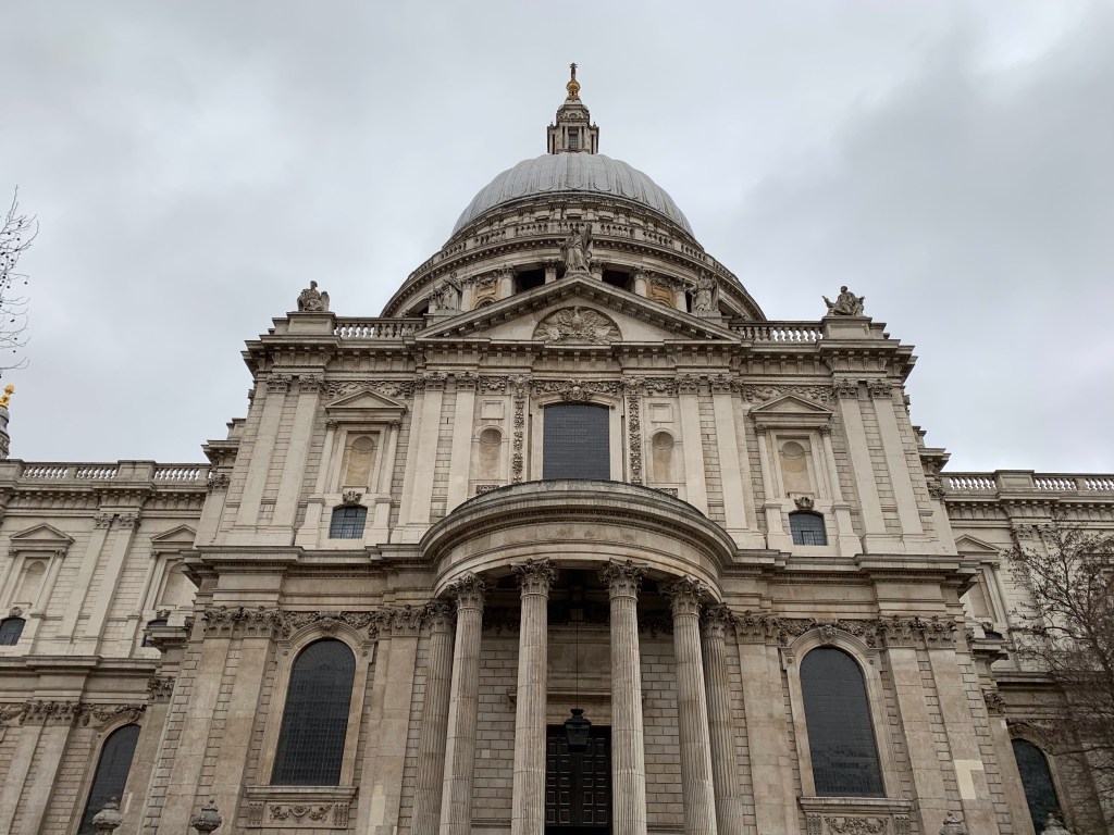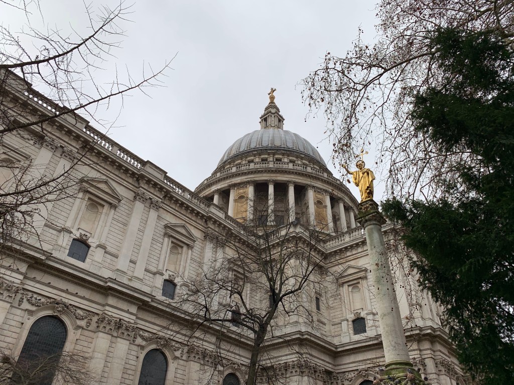 Az angol reggelink után – erről majd később – útnak eredtünk a London Bridge-en át, egészen a Szent Pál-székesegyházig (St. Paul’s Cathedral). Csakhogy wikipediáskodjunk kicsit, a katedrális London legmagasabb pontján, a Ludgate Hill tetején helyezkedik el.
