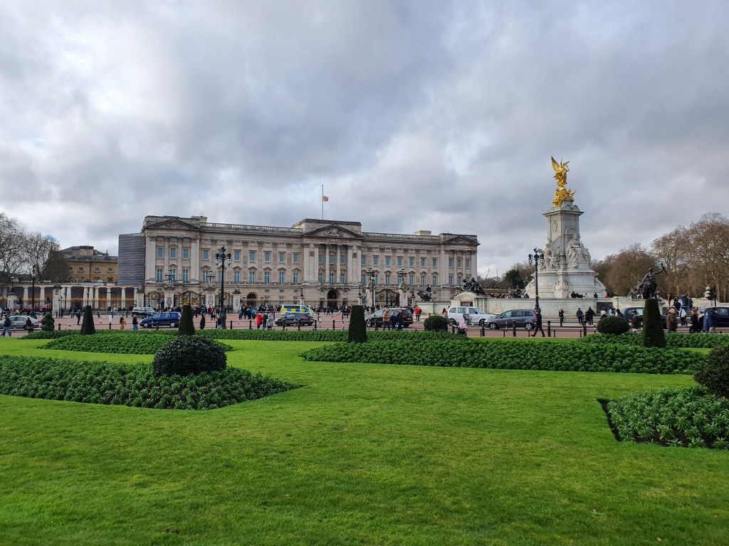 A templomtól már nem volt messze a Buckingham-palota, a városfoglaló sétánkban ez következett. De sajnos nem volt itthon senki, a királynő a téli rezidenciáján tartózkodott. 🙂