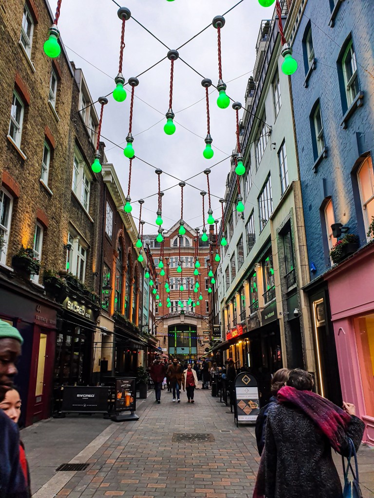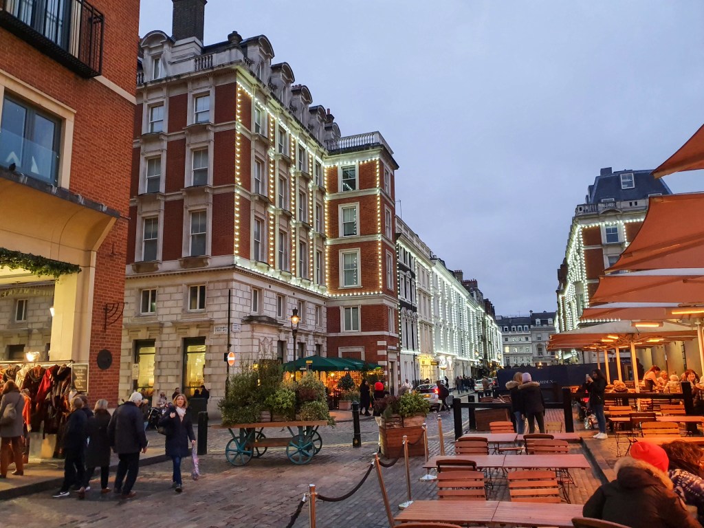 A West End Soho városnegyed London vibráló városnegyede, az éjszakai élet központja, amely rengeteg design ruhaboltokkal, pubokkal, éttermekkel van tele. A városnegyed mellett található a kínai negyed, valamint a Covent Garden, amely a színház- és mozinegyede a városnak. Tényleg minden második épület valamilyen színház. A Covent Gardenben található egy kézműves piac, melynek Apple Market a neve, valamint a Seven Dials Market, ami egy igazi városi, újhullámos hely enni-inni, valamint szintén design, kézműves termékeket vásárolni.