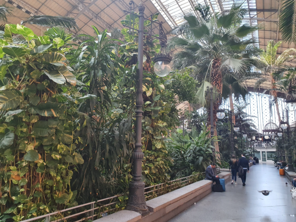 A parktól nem nagyon messze, de egy kisebb kiadós sétára található az Atocha pályaudvar, amely váróterme szintén botanikus kertként szolgál.