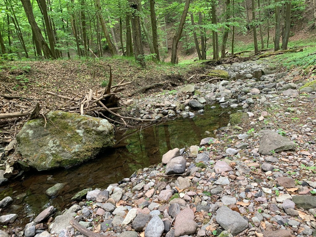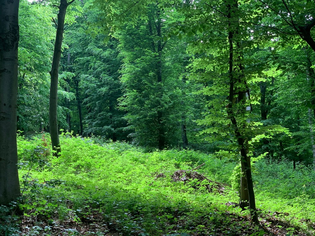 A szakasz ezen része meglehetősen nyugodt, néhol szélesebb, néhol keskeny ösvényen halad, sűrű erdő vesz minket körül, keresztezzük a bringautat, majd meredeken leereszkedünk a Bükkös-patak völgyébe, egy rövid ideig a piros jelzéssel együtt haladunk, a Sikáros-rét egy részéig.