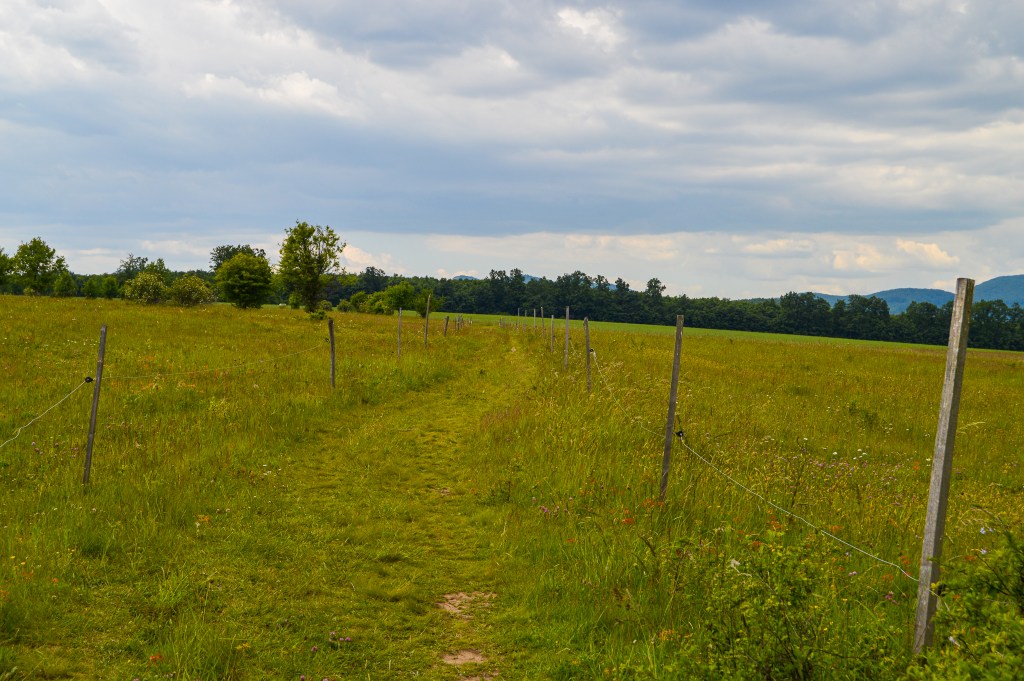 Nemsokára egy csendes mezőre érkezünk, ami ketté van szelve villanypásztoros kerítéssel, amit mi csak demilitarizált zónaként emlegettünk. 🙂