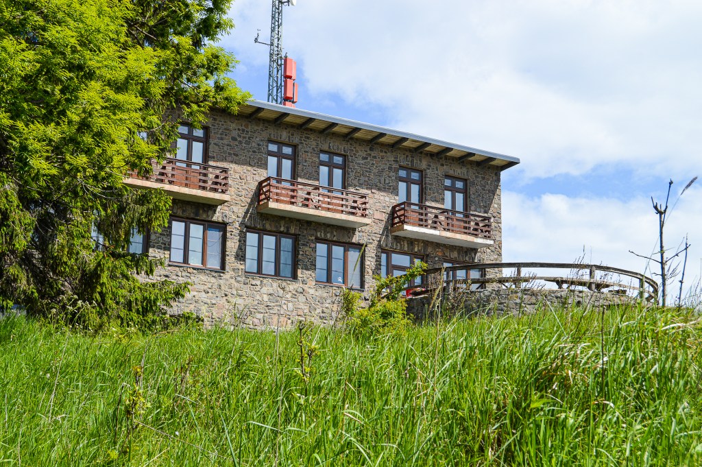 A már tényleg végtelennek tűnő felfelé vezető út után elérjük a 865 méter magas Nagy-Hideg-hegy csúcsát. A turistaház büféjében pecsételünk, majd ajánlott pihenni kicsit. Legalábbis addig, amíg ismét megcsodáljuk a panorámát.