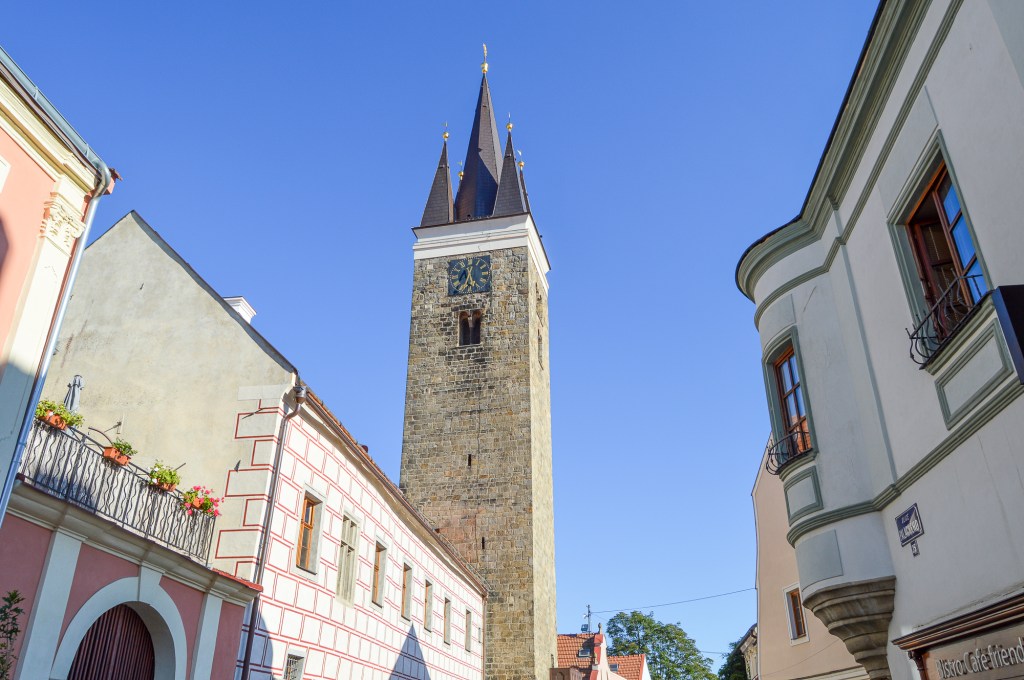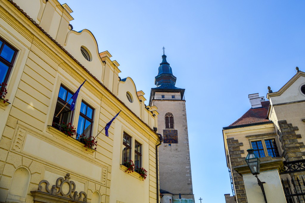 A város főterén áll a Szent Jakab-templom, amely tornyából csodás körpanoráma tárul elénk. A belépő 40 korona, a látványért amit kapunk cserébe, mindenképp megéri.A templom szomszédságában található a reneszánsz jegyeit őrző kastély, amelyhez egy angolkert is tartozik. A központot körülölelő tavakban pedig csónakázni is lehet.